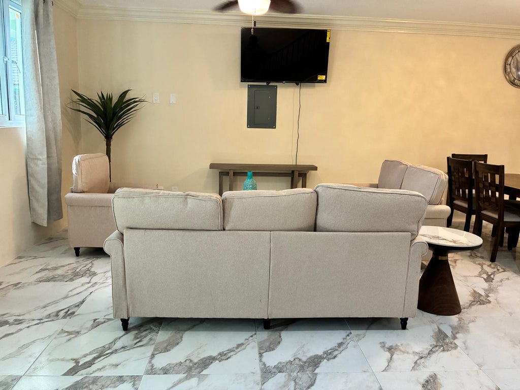 Available Immediately, this 2-bedroom, 2.5-bath executive townhouse is in the highly sought-after gated community of Venice Bay. Thoughtfully designed for modern island living, this residence combines style, functionality, and comfort in an exclusive, secure environment. The first floor features a bright, open-concept layout that seamlessly connects the living, dining, and kitchen areas—perfect for both relaxed everyday living and entertaining. The kitchen is equipped with stainless steel appliances, a gas stove, and contemporary finishes, offering both elegance and practicality. Upstairs, you’ll find two spacious bedrooms, each with its own ensuite bath for privacy and comfort, plus a bonus room ideal for an office, nursery, or creative space. A convenient half-bath is located on the main floor along with a laundry area complete with washer and dryer, and a generator for added peace of mind. Residents of Venice Bay enjoy gated security, tranquil surroundings, and access to wonderful amenities including a community pool and tennis courts.